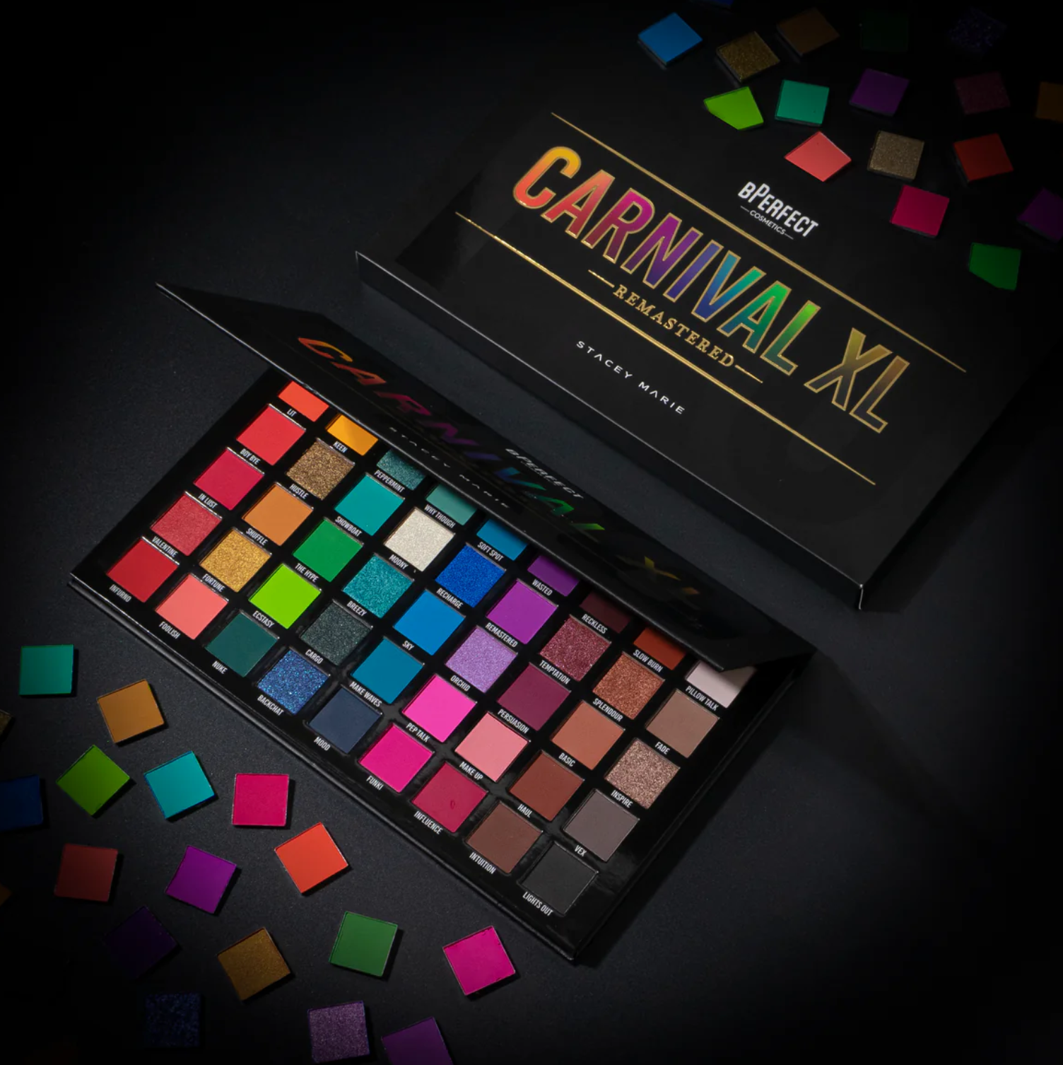 La icónica paleta Carnival XL Pro creada por Stacey Marie en colaboración con BPerfect reúne 40 tonos ultra pigmentados para ojos y rostro.