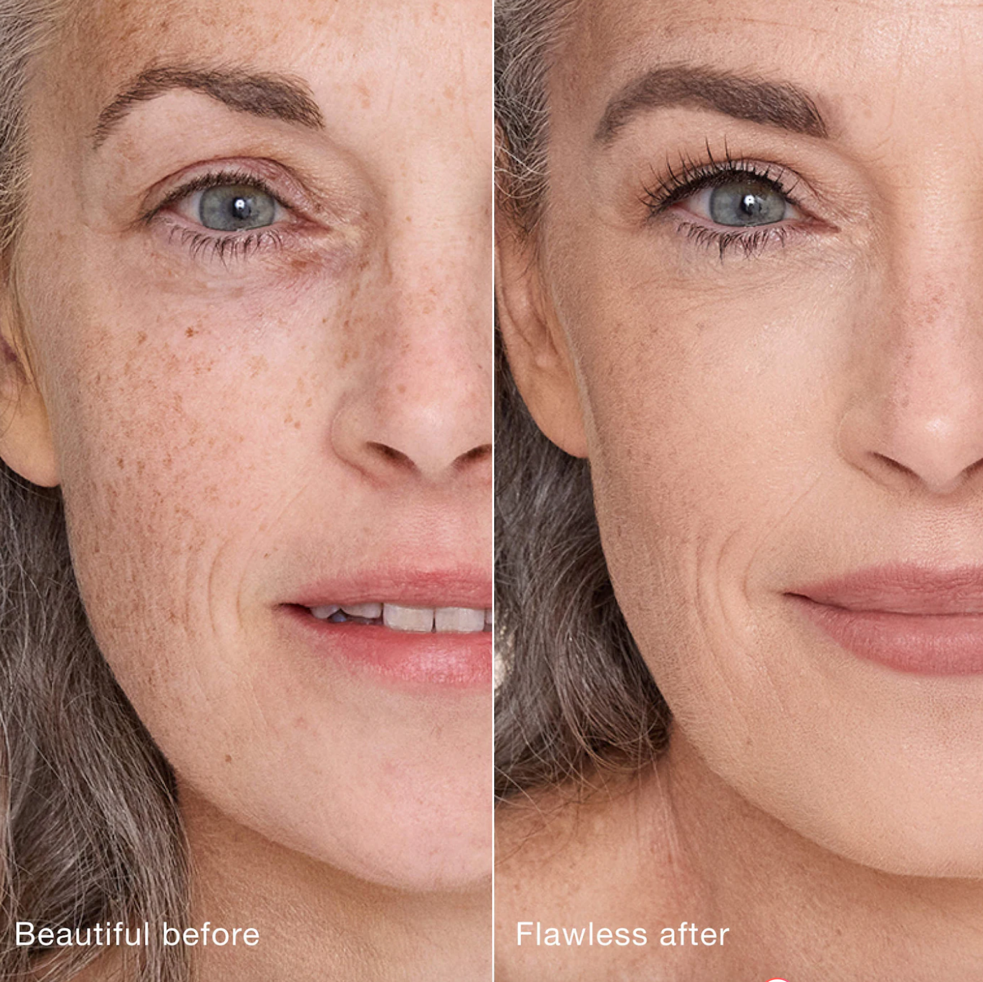 Disponible en 34 tonos con pigmentos inteligentes que se adaptan a tu tono natural de piel para neutralizar el color y borrar la apariencia de imperfecciones.
