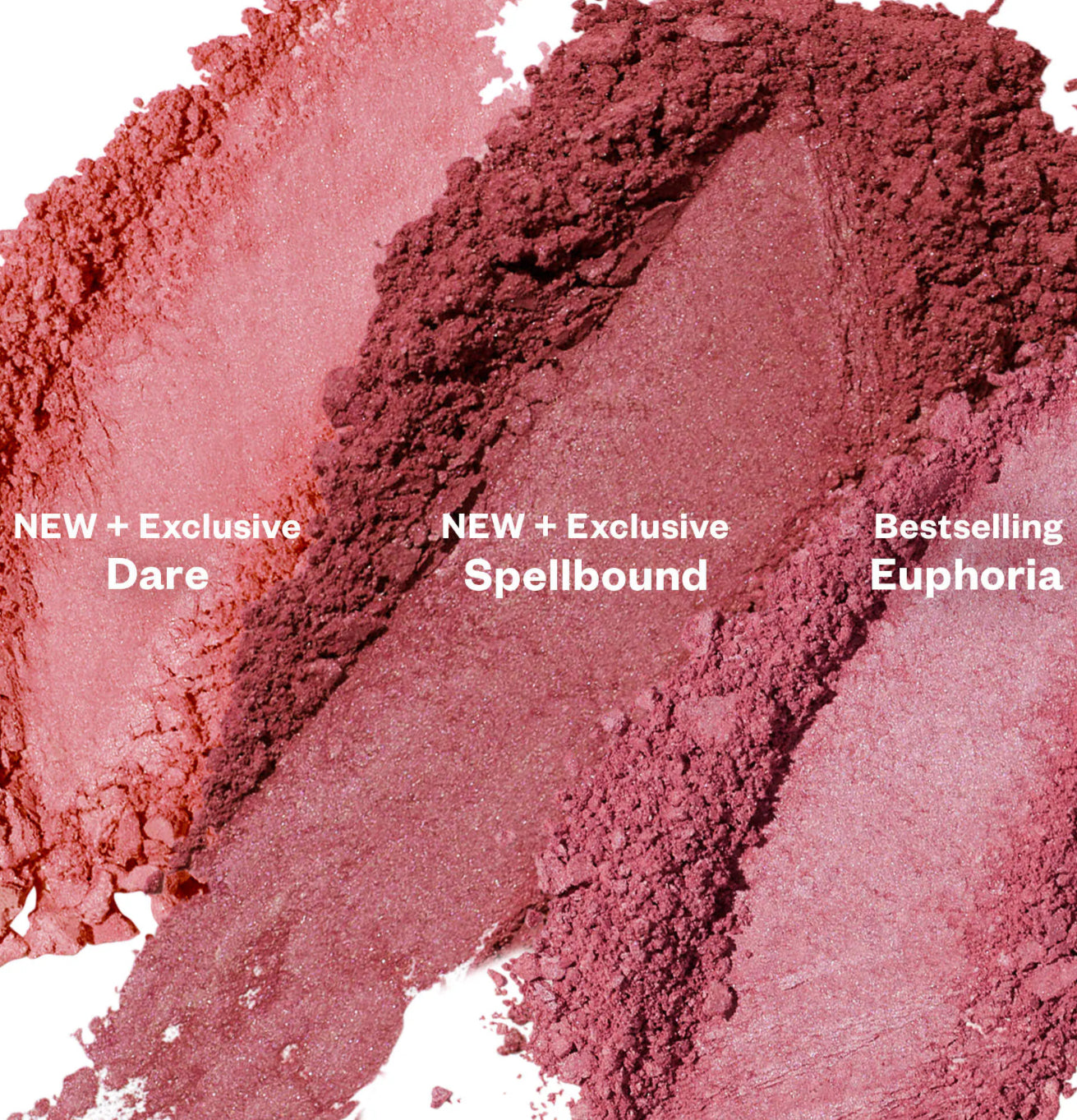 Qué es: Un conjunto de tres coloretes en polvo limpios, sedosos y sin talco con escualeno y ácido hialurónico en el éxito de ventas Euphoria y los nuevos tonos Dare y Spellbound.