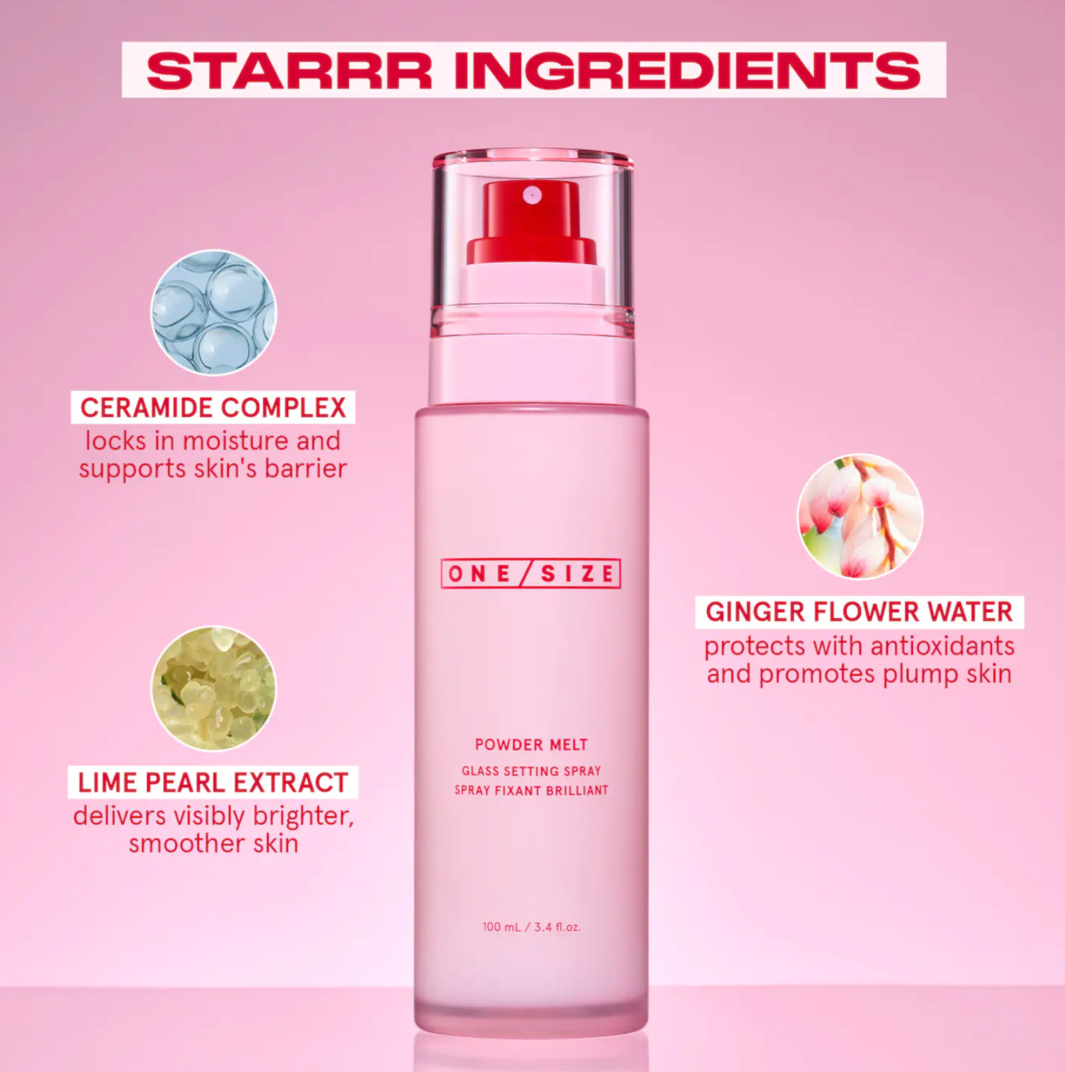 Qué es: Un spray fijador hidratante con ingredientes de cuidado de la piel que funde perfectamente las capas de polvo para lograr un acabado radiante tipo "piel de vidrio" que dura todo el día.