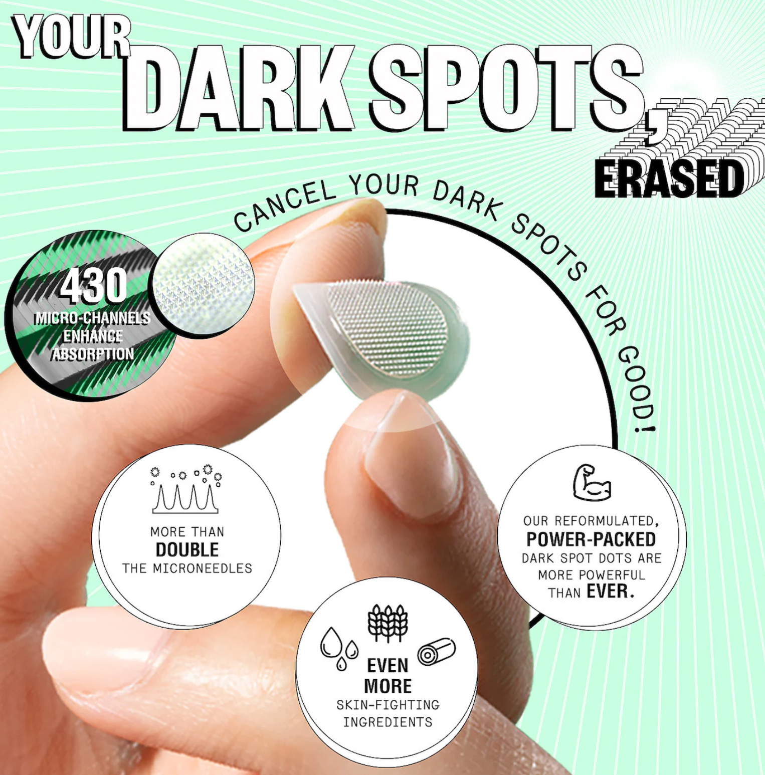 Qué es: Un parche iluminador formulado con niacinamida y microagujas infundidas con ácido tranexámico para atenuar manchas oscuras y decoloraciones posteriores al acné.