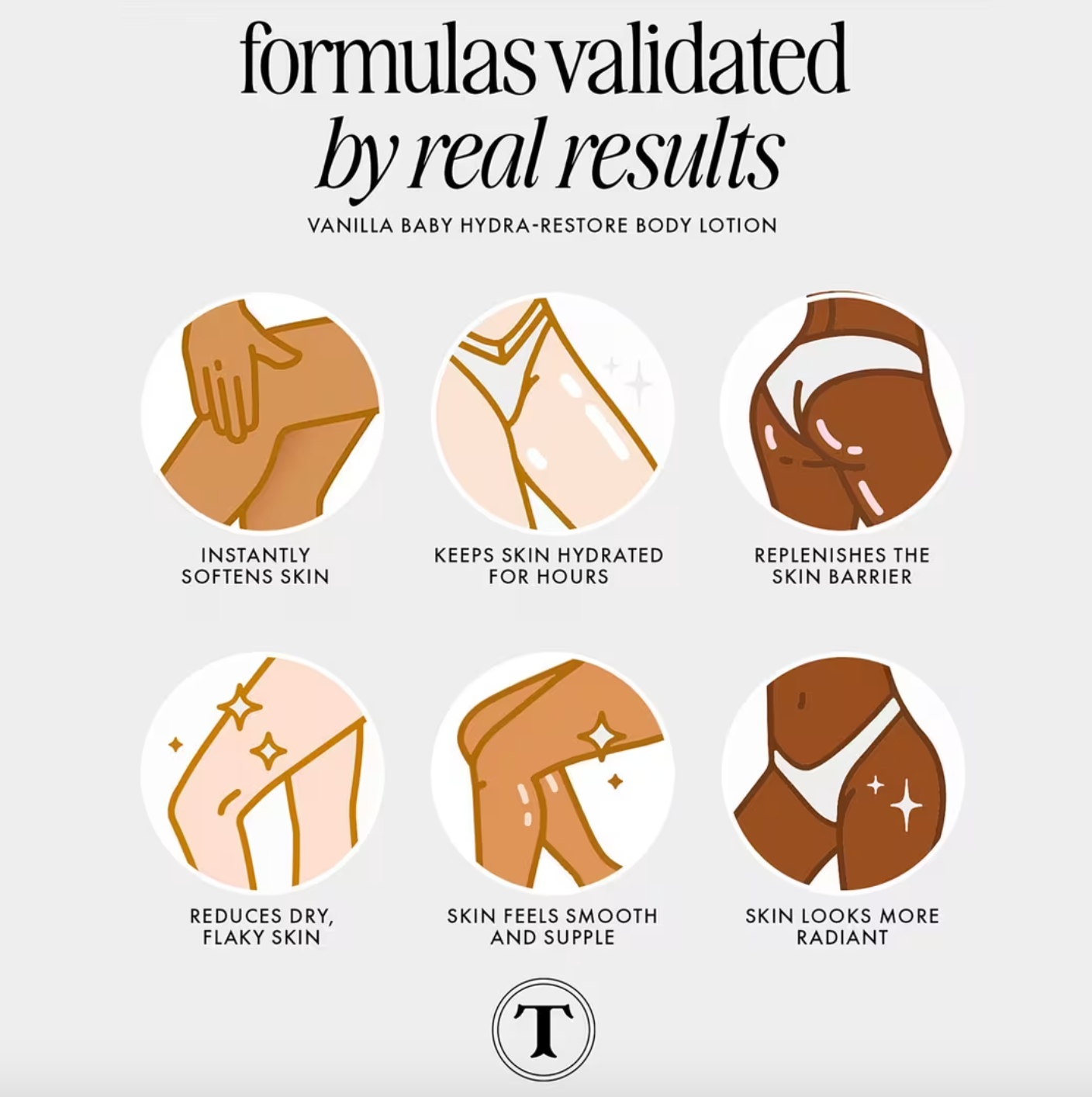 La loción corporal Vanilla Baby Hydra-Restore de Truly Beauty hidrata profundamente y nutre la piel con su Amino-Lipid Complex™, proporcionando humectación durante todo el día y dejando la piel más suave y radiante.